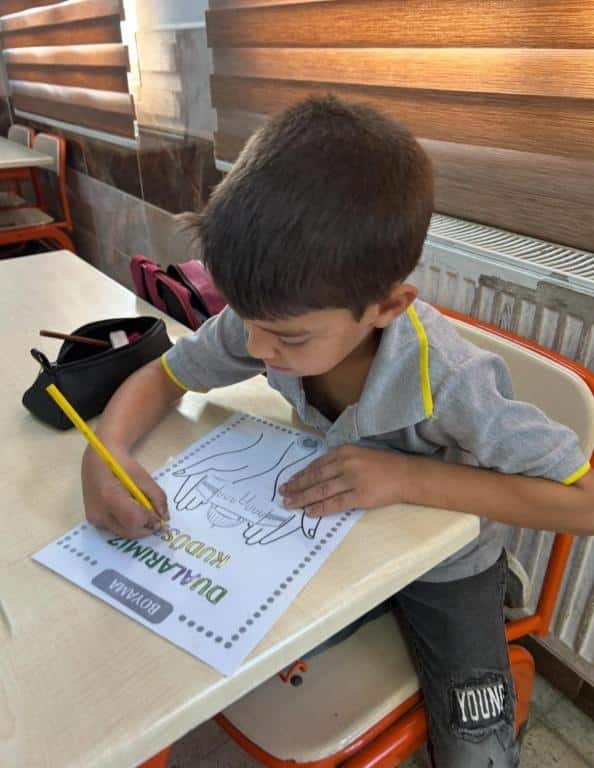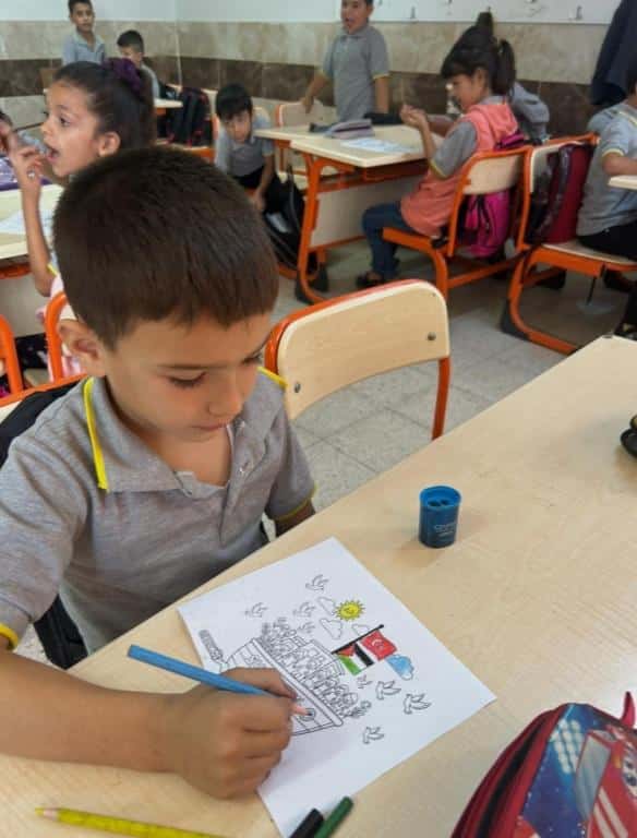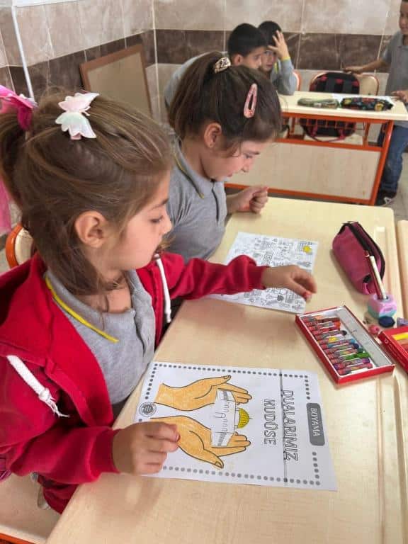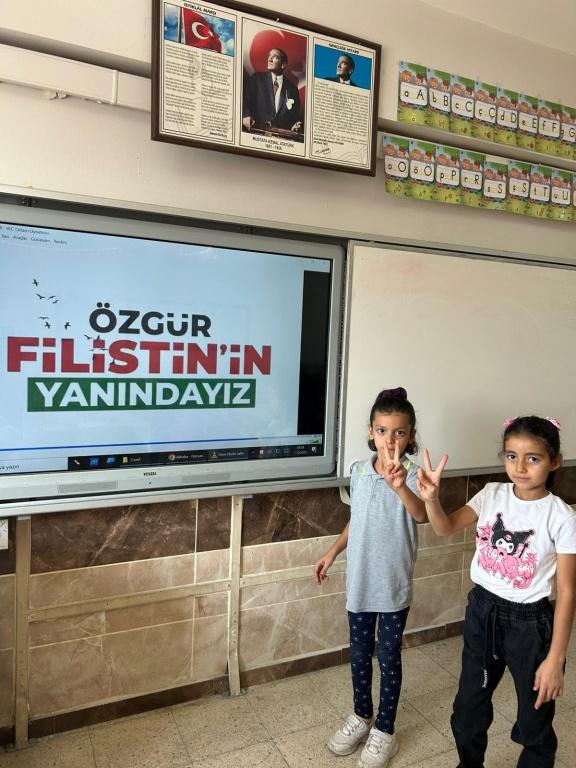 Okulumuz da bu çağrıya kulak vererek, öğrencilerimizin küresel sorunlara duyarlılığını artırmayı ve vicdani gelişimlerini desteklemeyi hedefleyen çeşitli etkinlikler gerçekleştirecektir. Bu etkinlikler kapsamında, öğrencilerimize Filistin'de yaşanan insani dramı daha iyi anlatabilmek ve barışın önemini vurgulayabilmek için eğitici içerikler sunuldu. Öğrencilerimizin hazırladığı resimler panolarda sergilendi.