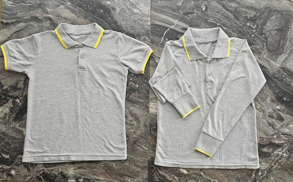 Okul üniforması yaka ve kollarda sarı çizgili gri renk tişört ve siyah okul pantolonundan oluşmaktadır.